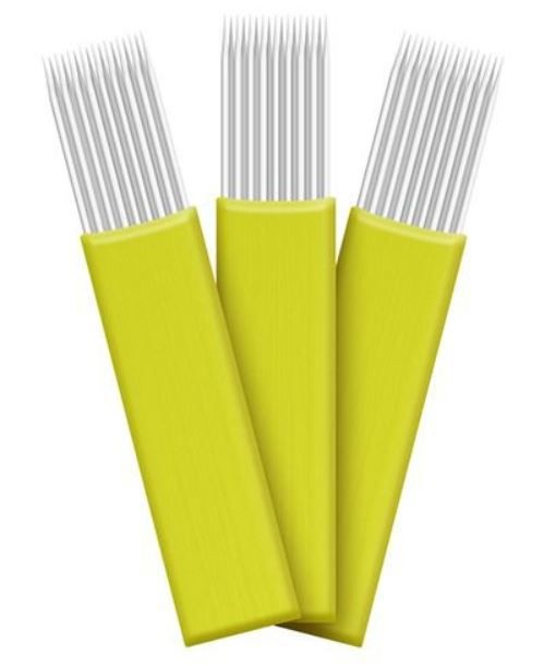 A Lâmina double line possibilita ao profissional traços mais precisos, pois possui uma excelente estabilidade e com menos vibração que as demais lâminas. Disponível nos modelos, 9 pontas, 15 pontas, e 17 pontas agulhas, com formato plano, são as lâminas ideais para procedimentos como esfumado e soft tape.