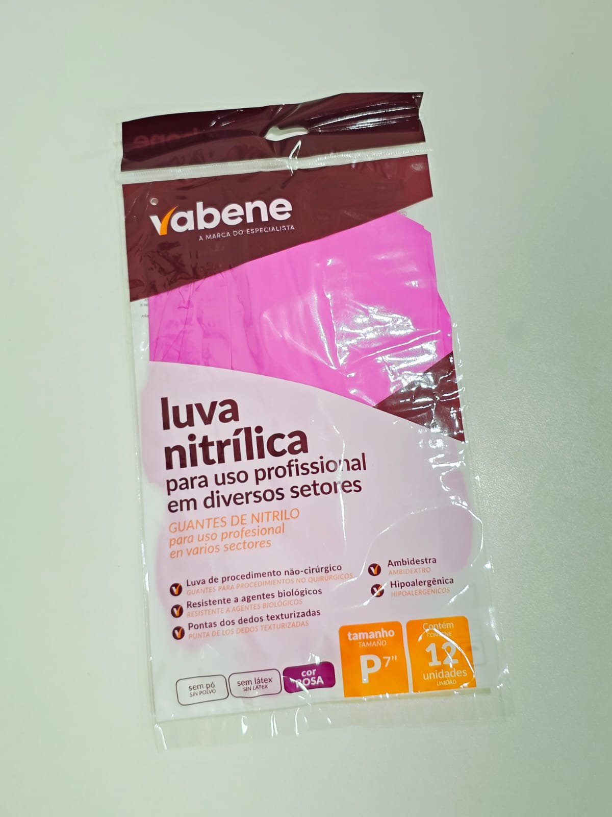 Luva Nitrílica sem Pó Rosa P 12 uni | Vabene