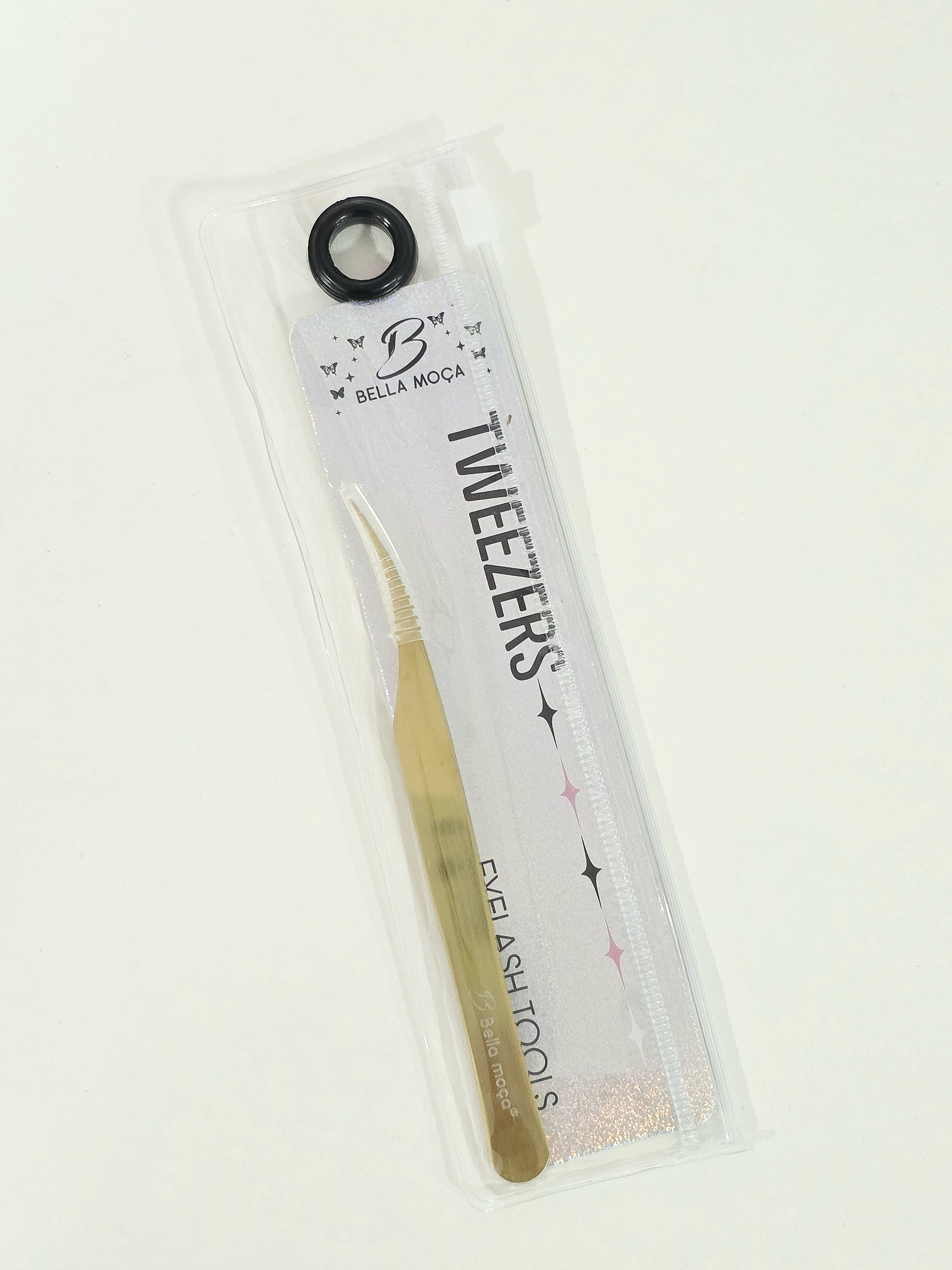 Pinça com excelente precisão! Com sua base fina e alongada, possibilita a acoplagem de um único cílio no fio natural da sua cliente.